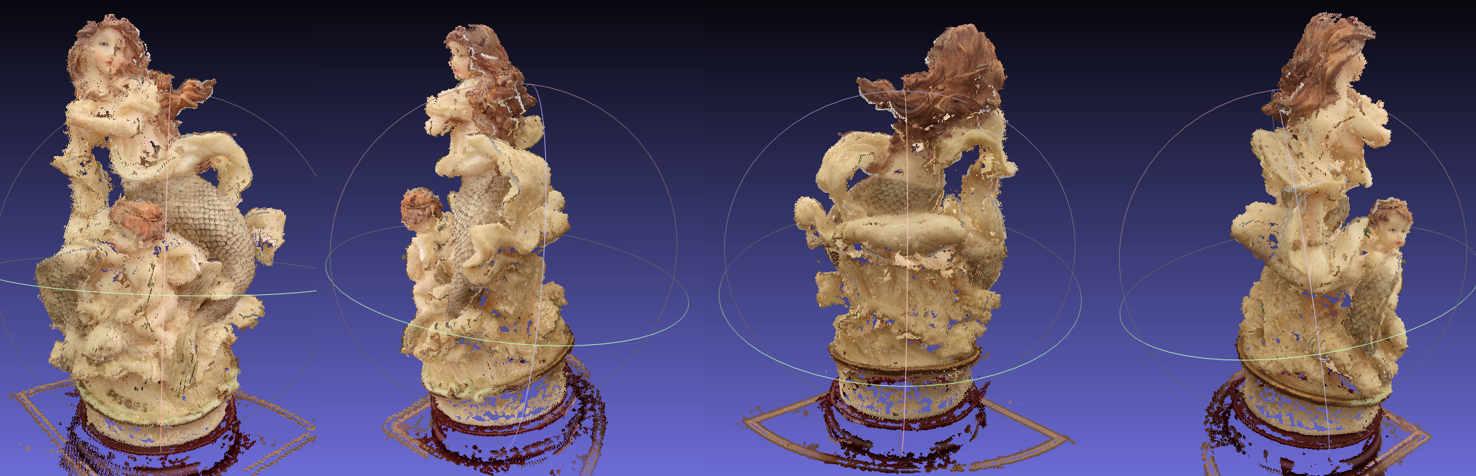 The SfM stage of this pipeline is noticeably faster than that of other Photogrammetry programs currently on the market, as it combines background filtering with translation baseline adjustment, which means that, even if it's an incremental SfM pipeline, it doesn't resection the camera every time a new view is added, it just adjusts the global translation within a camera triplet. There is also no need for this process to run within a RANSAC framework, as the background filtering removes many of the outliers still present after correspondence filtering. A small caveat of this library is that the object immortalized needs to be non-Lambertian (the Multi View Stereo stage will fail otherwise), thus the application targets those who want a quick and efficient way to create 3D meshes of small household objects in order to import them in a graphics engine to create video games or CGI.