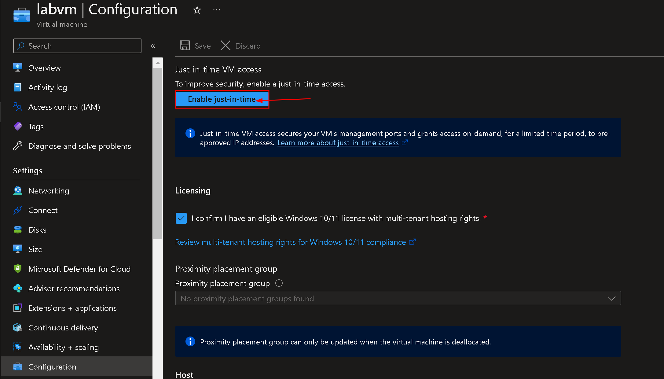 In order to reduce our attack surface, we need to enable a security feature called 'Just in Time' access. You can read more about this at the following link.