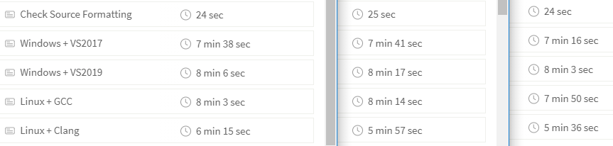 (A totally unrelated aside: I wonder whether all this will have a noticable effect (be it positive or negative) on the average build times...) Edit: Quickly comparing two of the latest ... and not having a clear idea about the variance of the build times, it appears to be not noticably faster or slower than before. OK... |