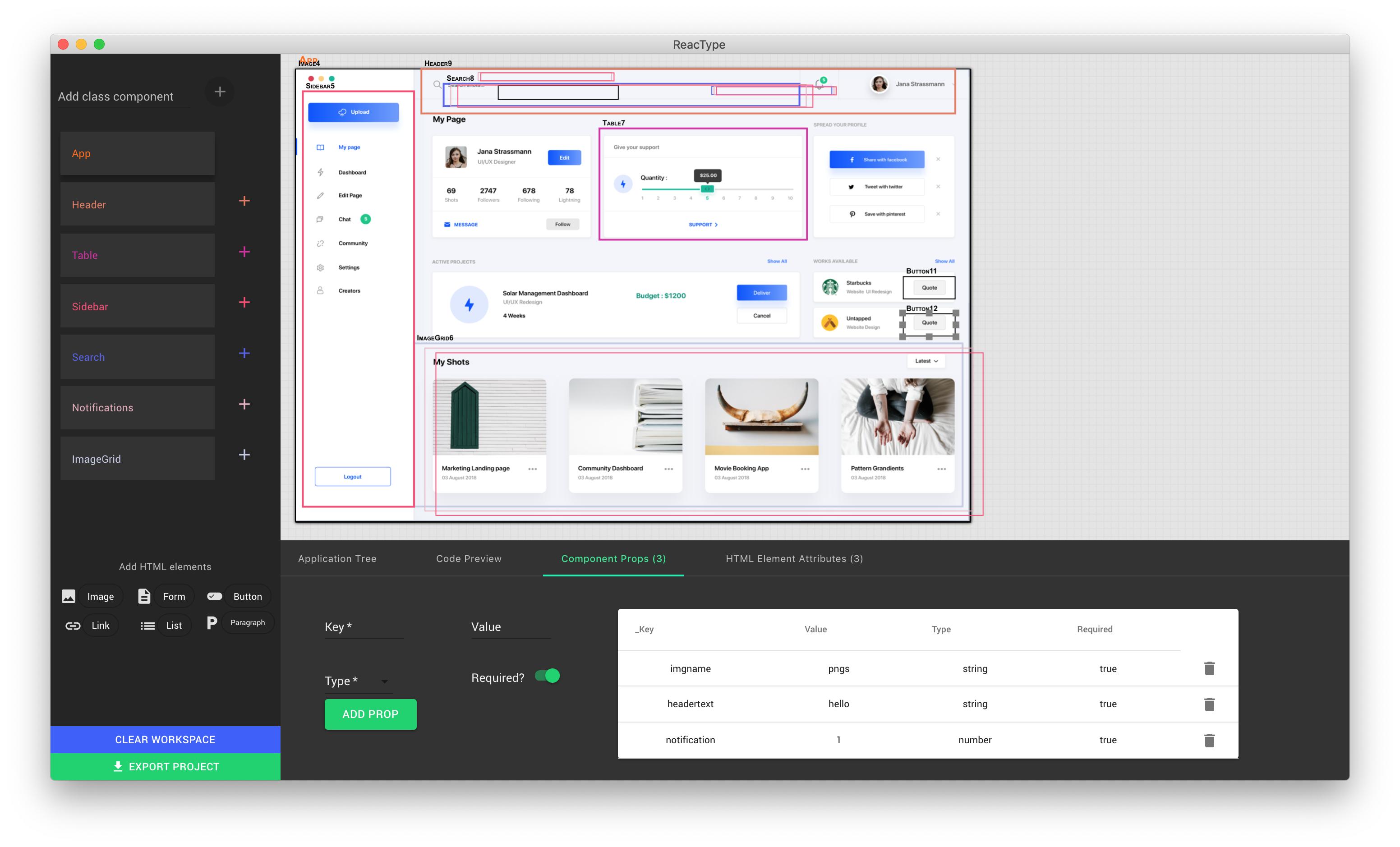 ReacType is a visual prototyping tool for developers employing React component architecture alongside the comprehensive type checking of TypeScript. In other words, you can draw prototypes and export React / Typescript code!