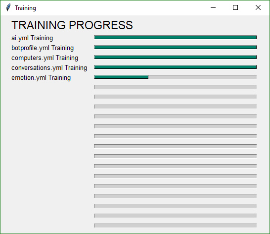 The PySimpleGUI Demo Program for the Chatterbox AI has a window with multiple progress meters on it. It looks like this when training.