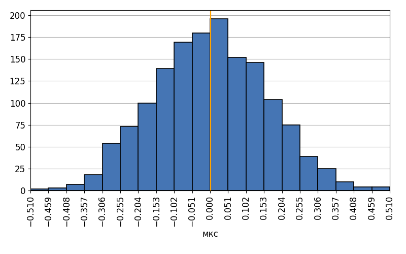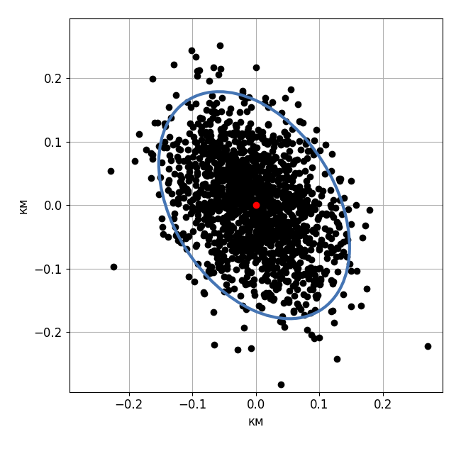 Spread of lighting localization with curce in the center of the triangle of stations.