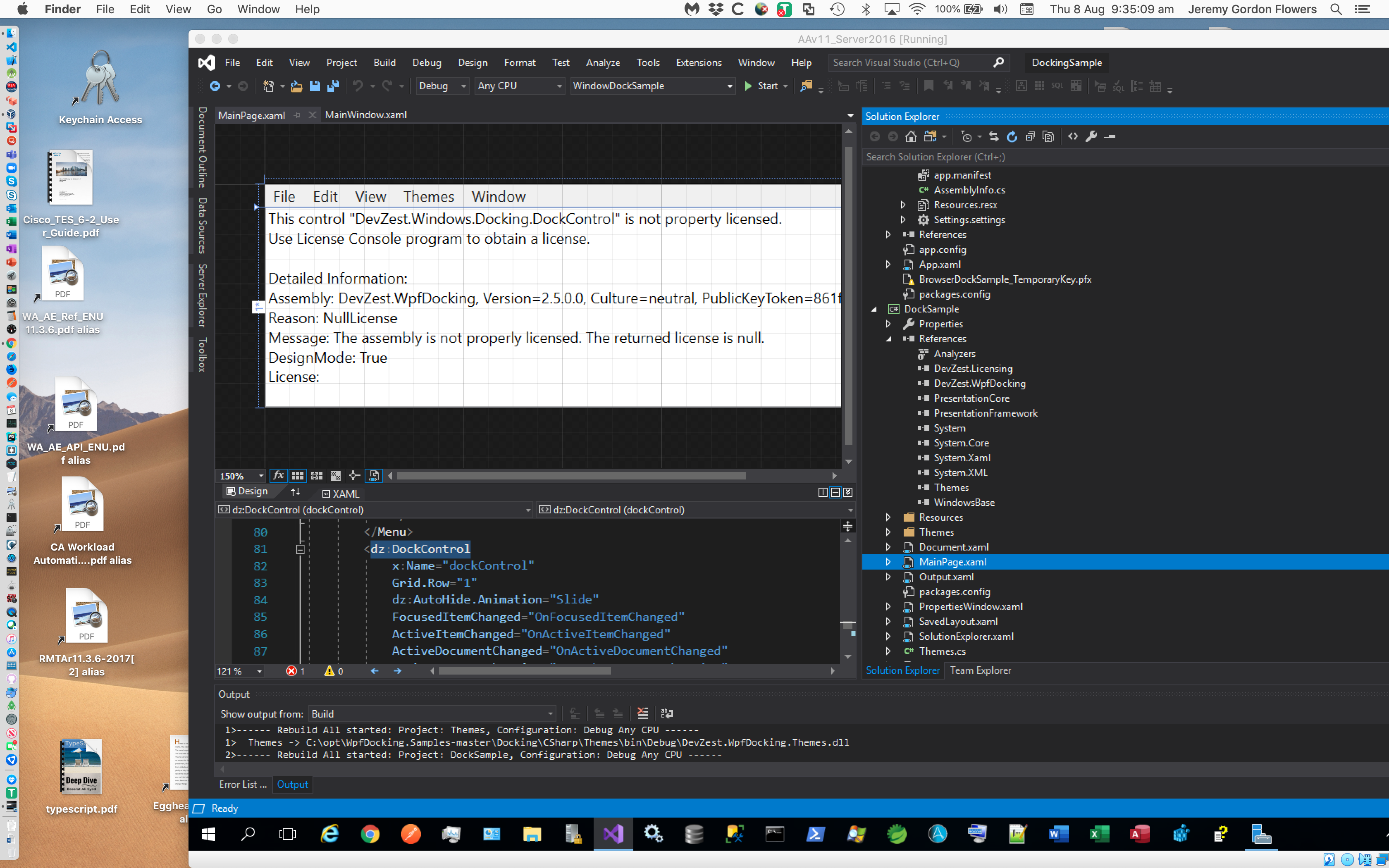 So I go to the MainPage.xaml in the DockSample project and I get the license not installed message.