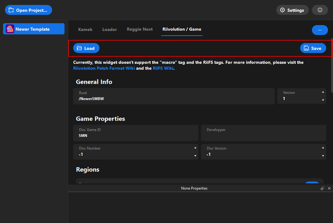 To load the riivolution file, you have to press the Load button. Then, you can edit the file and save it by pressing the Save button.