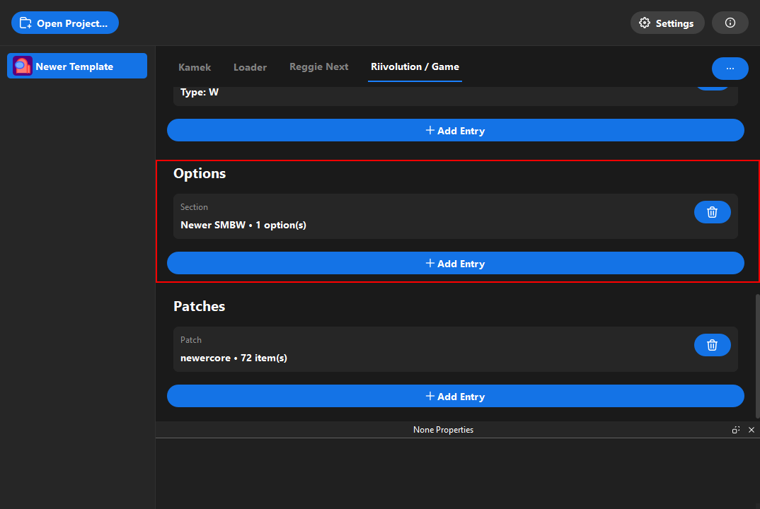 Here you can edit the general information of the patch, like the root folder and the version of riivolution the patch should use.