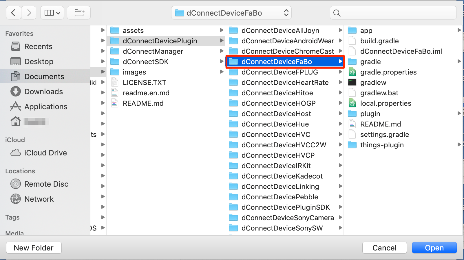 dConnectDeviceFaBoを選択してください。