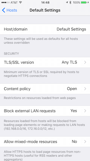 Blocks mixed-content requests (http elements on an https page) unless disabled (useful for RSS readers), shows broken padlock