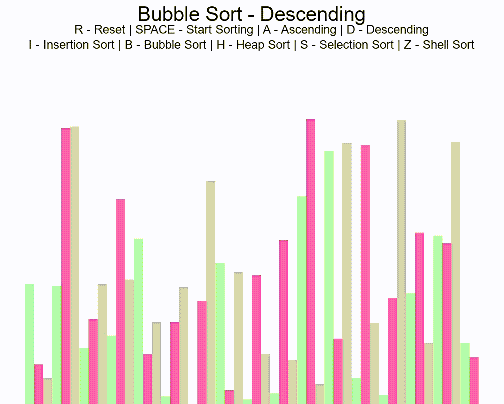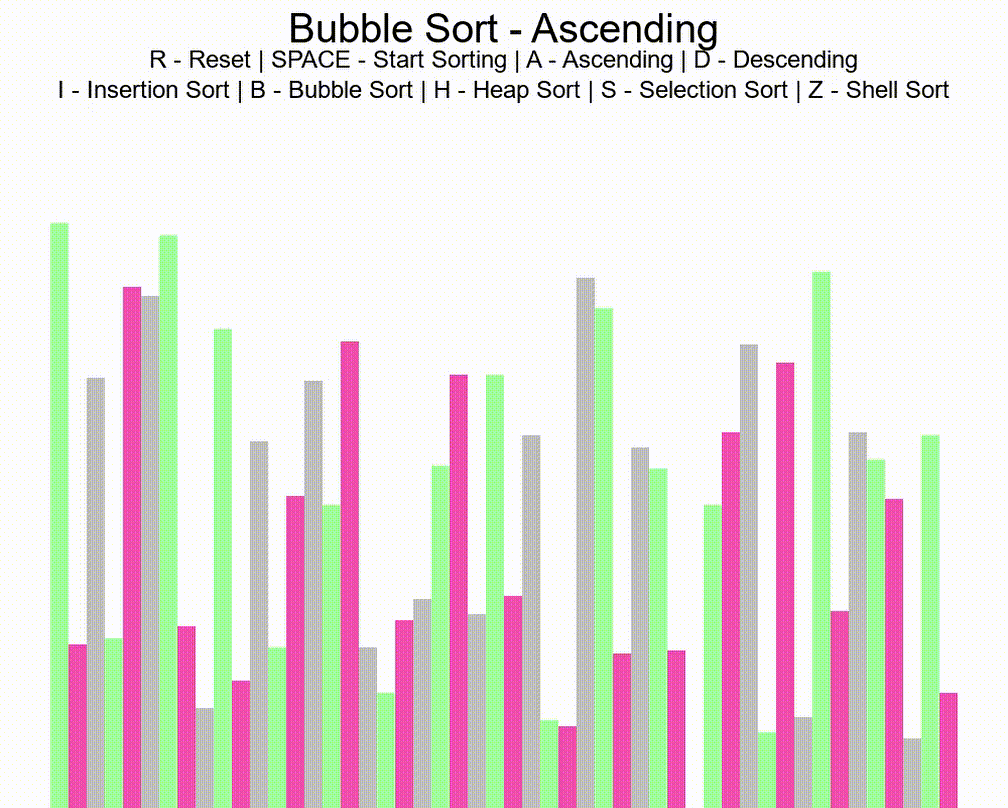 Presently, there are 5 sorting algorithms which will be visualised: