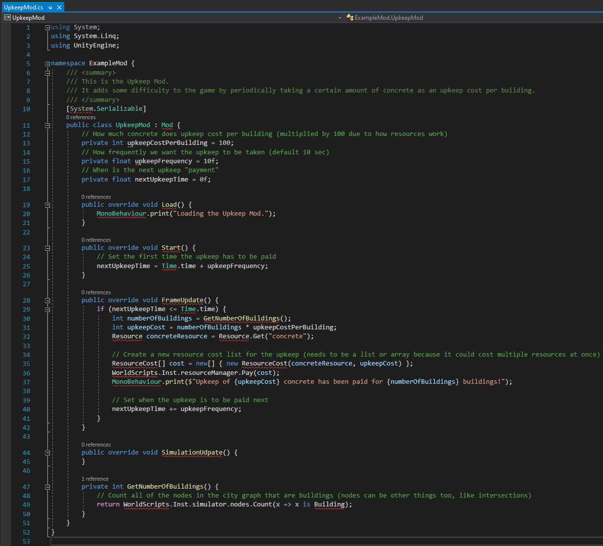 Broken mod deactivated: ExampleMod.UpkeepMod at mod.Update(). Possibly Unity Version mismatch or game update. Consider reloading the game without this mod.