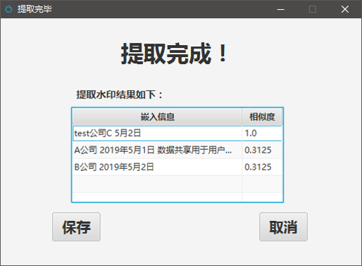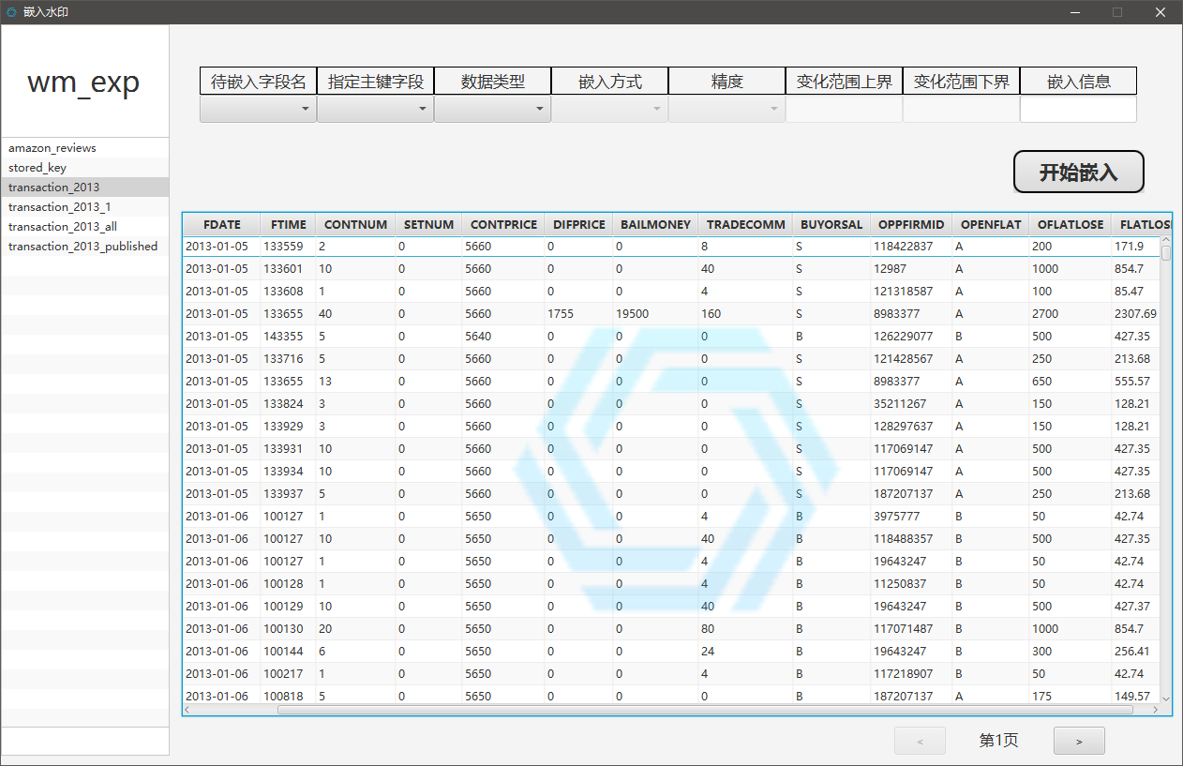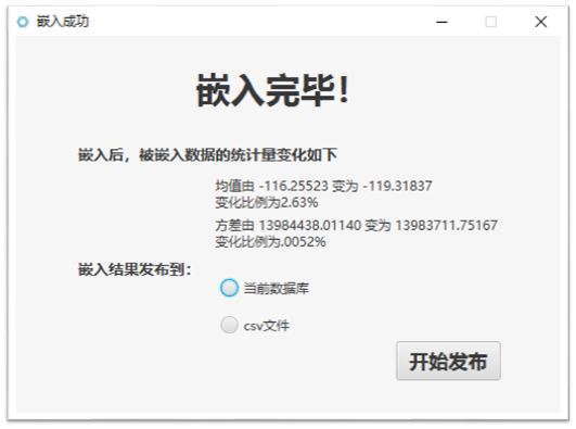 - 通过参考相关学术文献,对于数值型、文本型两大类型数据实现了共五种水印嵌入提取算法;