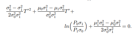 要求最优阈值,即求出错概率最小时,T的值。因此,当一次导函数等于0时,且二次导函数大于零时,T的值为最优阈值