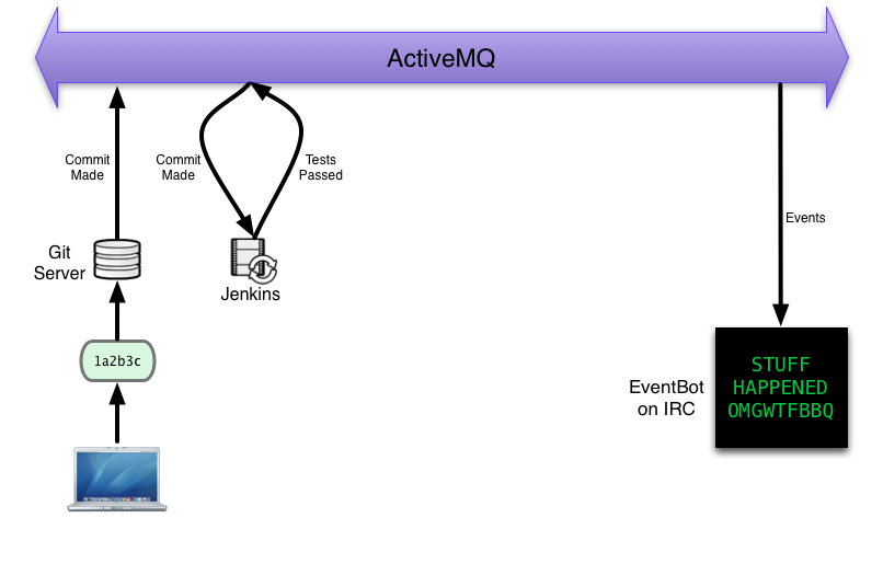 Stomp-jenkins: Watch future.git.commits, if a project we care about has been updated, prod Jenkins via HTTP to kick off a build. (future.git.commits is one of our own topics. Yours should be different.)