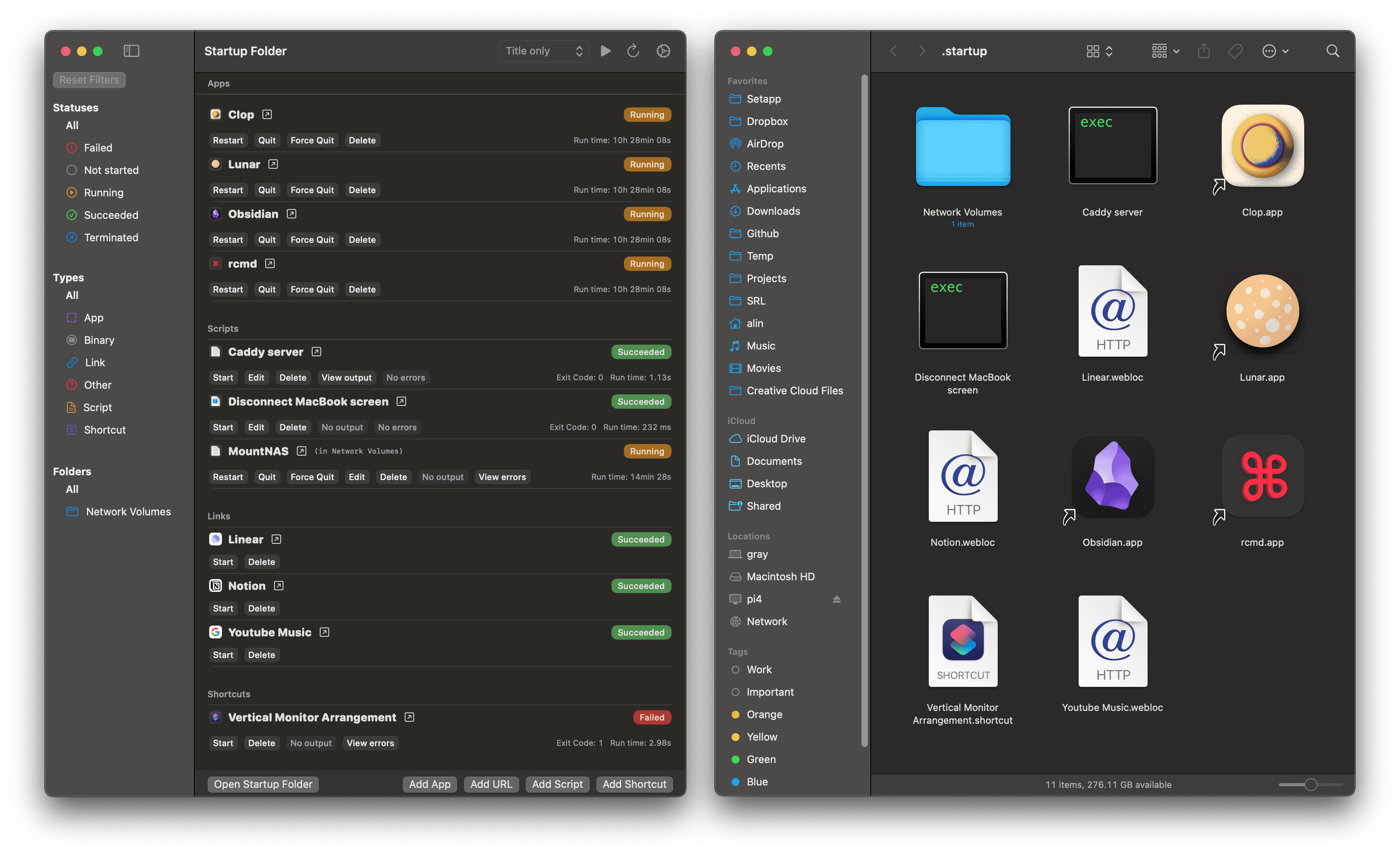 The app is designed to be as simple as possible. It runs a background agent that launches and keeps track of startup items.