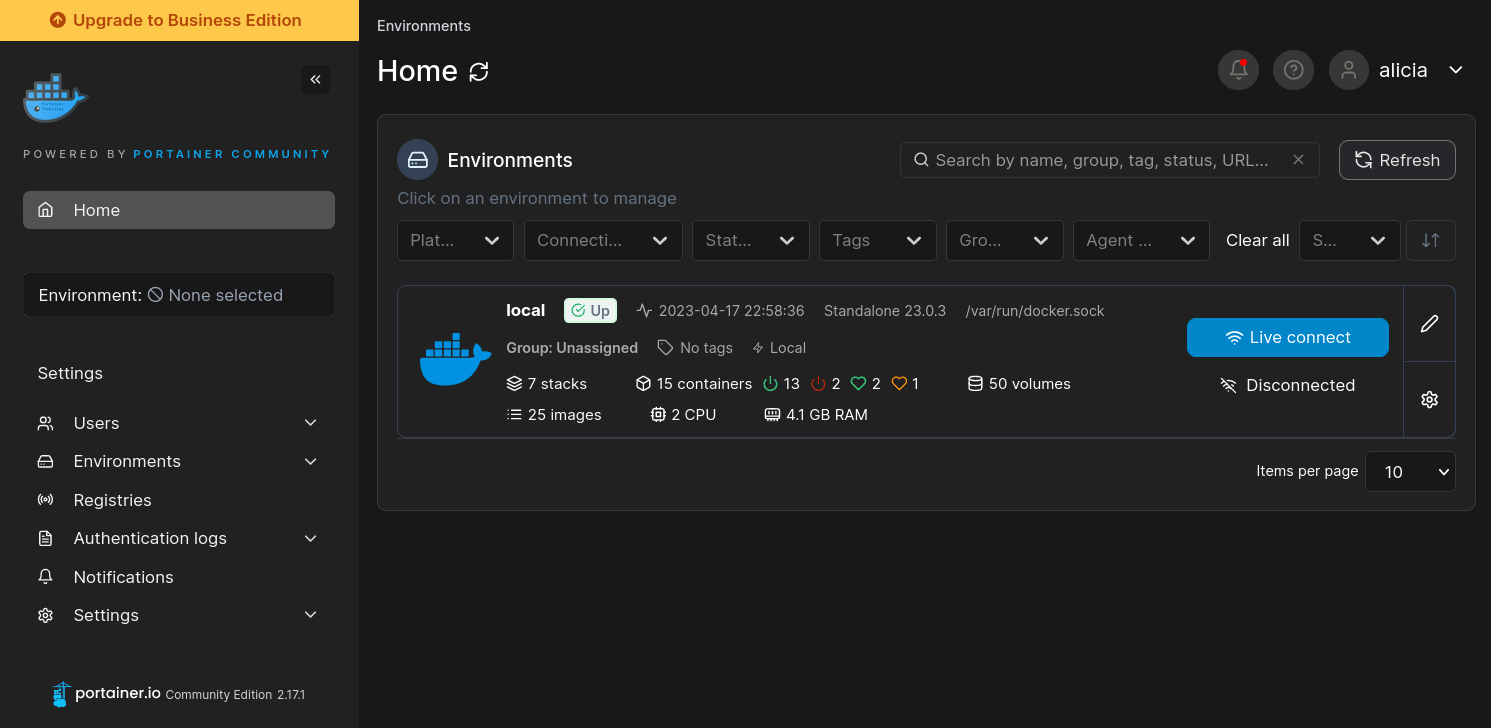 - Log into your Portainer web UI