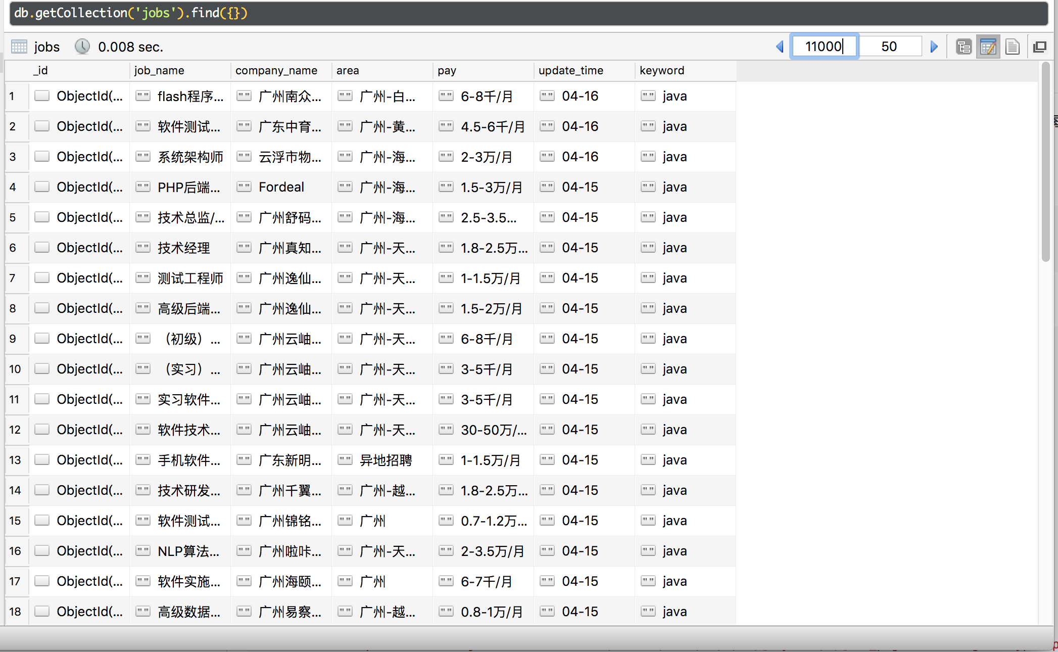 keywords = ['php', 'java', 'python', 'node.js', 'go', 'hadoop', 'AI', '算法工程师', 'ios', 'android', '区块链', '大数据']