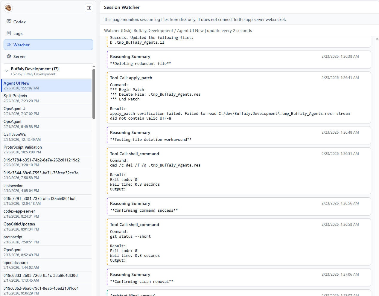 /watcherfor monitoring CLI or Web sessions using the same timeline style as the main UI.