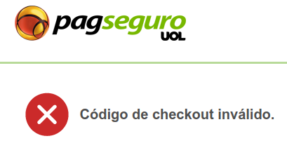 | Caso as alterações não sejam feitas, o PagSeguro te notificará de erro retornando a seguinte mensagem _Código de checkout inválido_: | ||