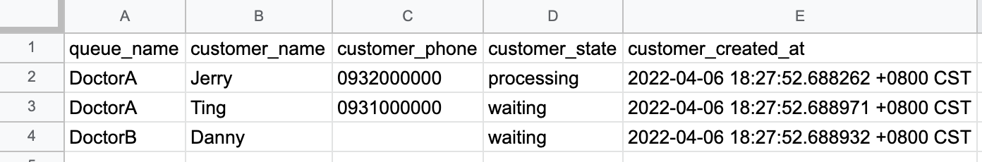 - Once the store is closed, Queue System will send a CSV report to the store owner. This CSV file contains all customers' detailed information to let the store owner implement further business analysis.
