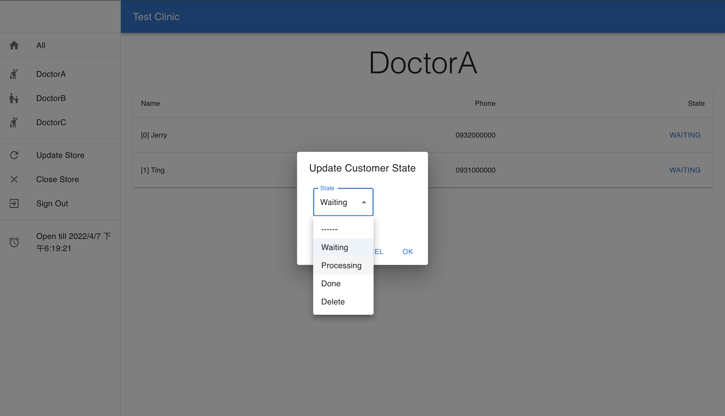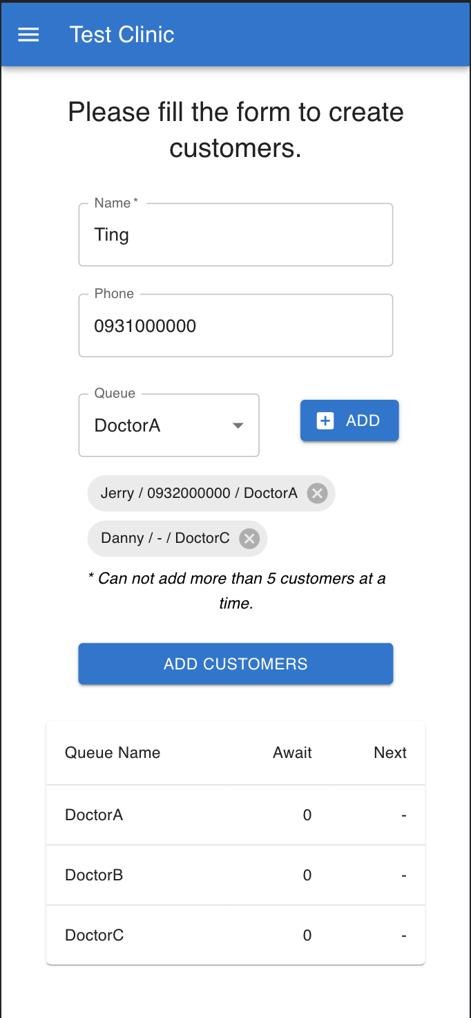 - When a new customer joins the line or the state of a customer is updated, the website will refresh immediately and automatically.