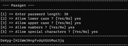 2. Type python passgen.py or passgen