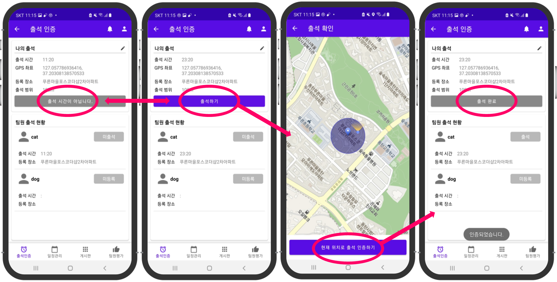 | 스터디룸 - ①출석인증 / 출석 인증하기 |