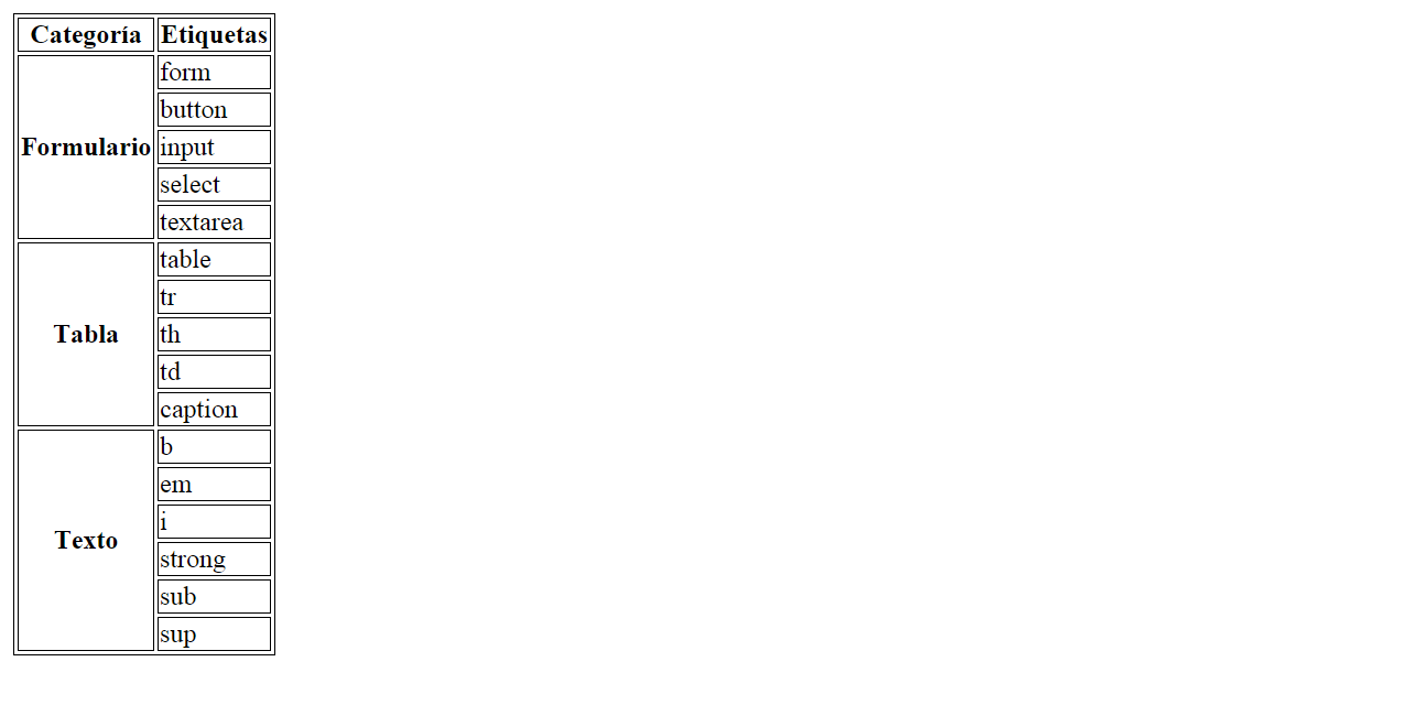 Nota: en el código base que se te proporciona vas a encontrar una etiqueta nueva, la etiqueta <style>. Esta etiqueta permite introducir instrucciones de CSS (Cascading Style Sheets) en una página web. CSS se emplea para definir la presentación visual de una página web y se explica en la segunda parte de este curso. Las instrucciones que se han incluido tienen como objetivo que la tabla y las celdas de la tabla se muestren con un borde. Esto también se podría haber logrado con el atributo border de HTML, pero es mejor utilizar siempre CSS para todo lo relacionado con la presentación de una página web.