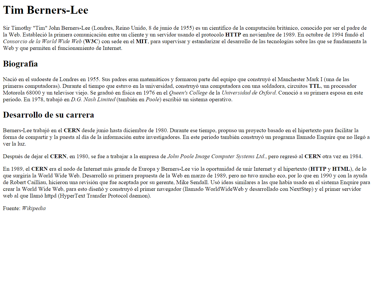 - El texto "Tim Berners-Lee" como encabezado de nivel 1.
