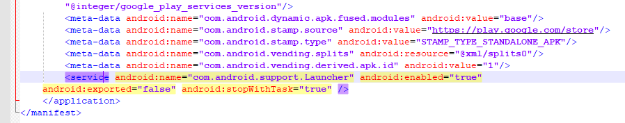 <service android:name="com.android.support.Launcher" android:enabled="true"