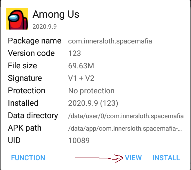 Open the APK file. Click View to show its content