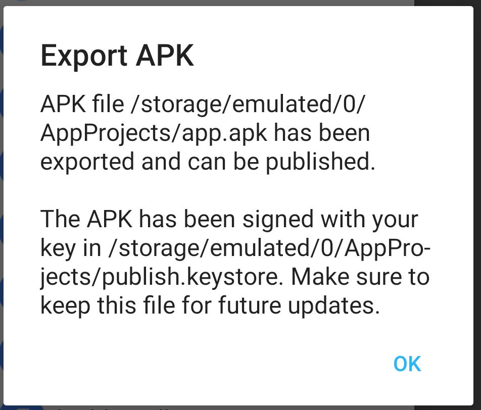 The APK will be exported