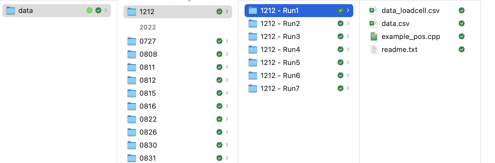 - Copy and paste 'data.csv' and 'data_loadcell.csv' files to some local directory