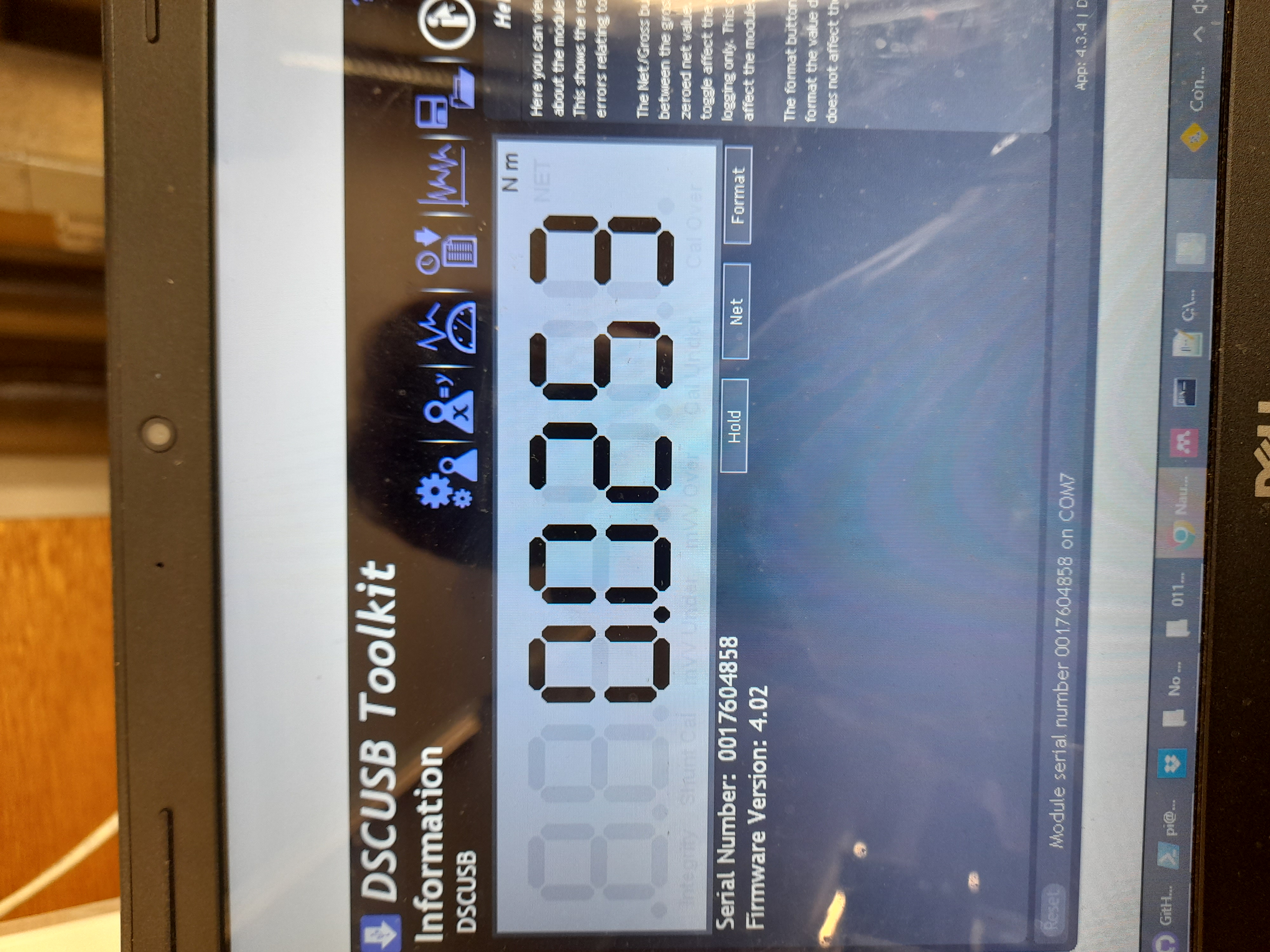 Open DSCUSB toolkit program and choose 'Net' for the torque calculation, so that there is no torque recorded at rest