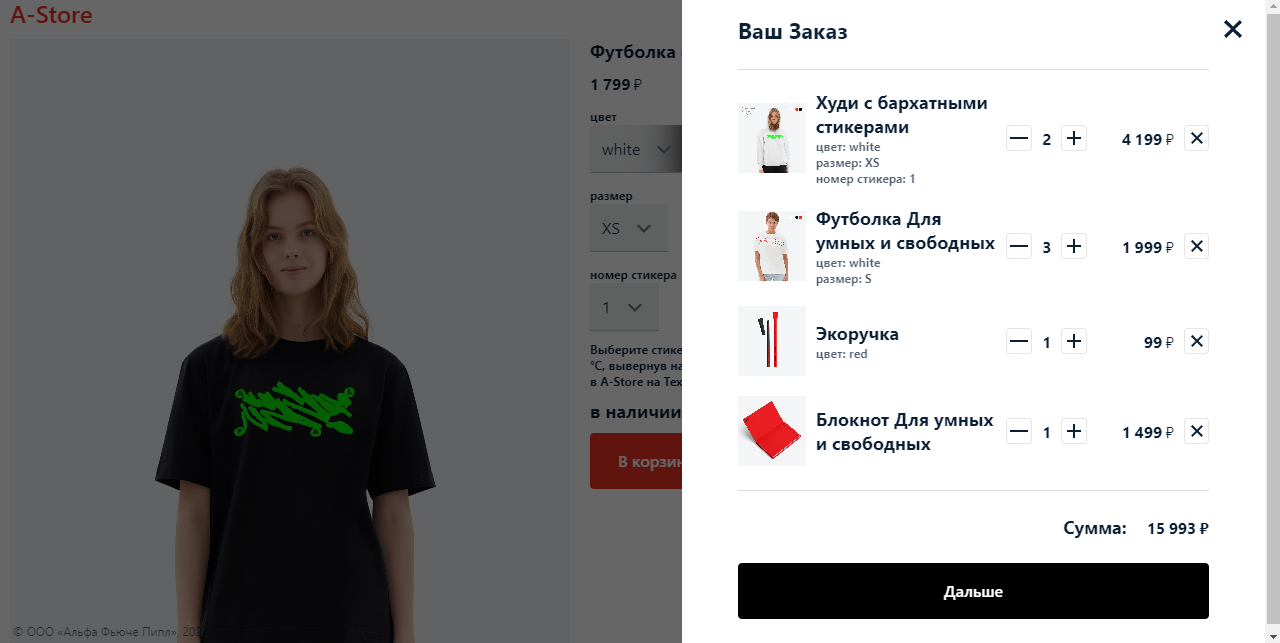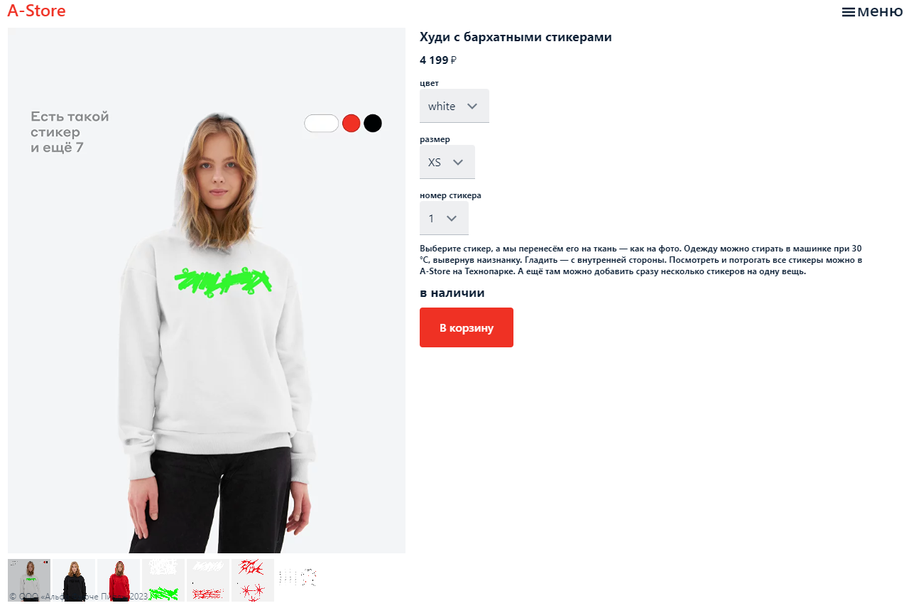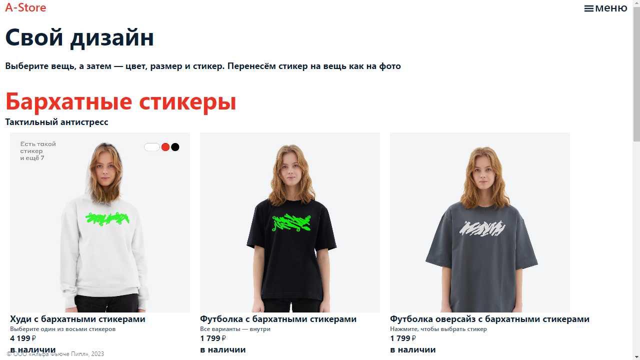 В магазине можно выбрать классные футболки, худи и многое другое, а также наклеить на них приятные тактильные стикеры!