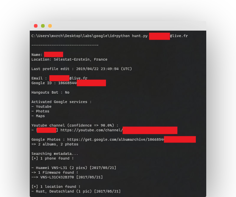 GHunt is a modulable OSINT tool designed to evolve over the years, and incorporates many techniques to investigate Google accounts, or objects.
