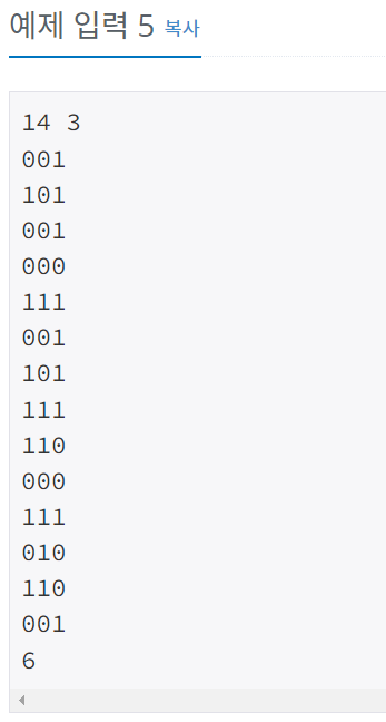 램프의 상태를 한줄씩 파악해서 스위치 작동 가능 횟수(K)로 스위치를 다 켤 수 있는지, 없는지 파악한 후에