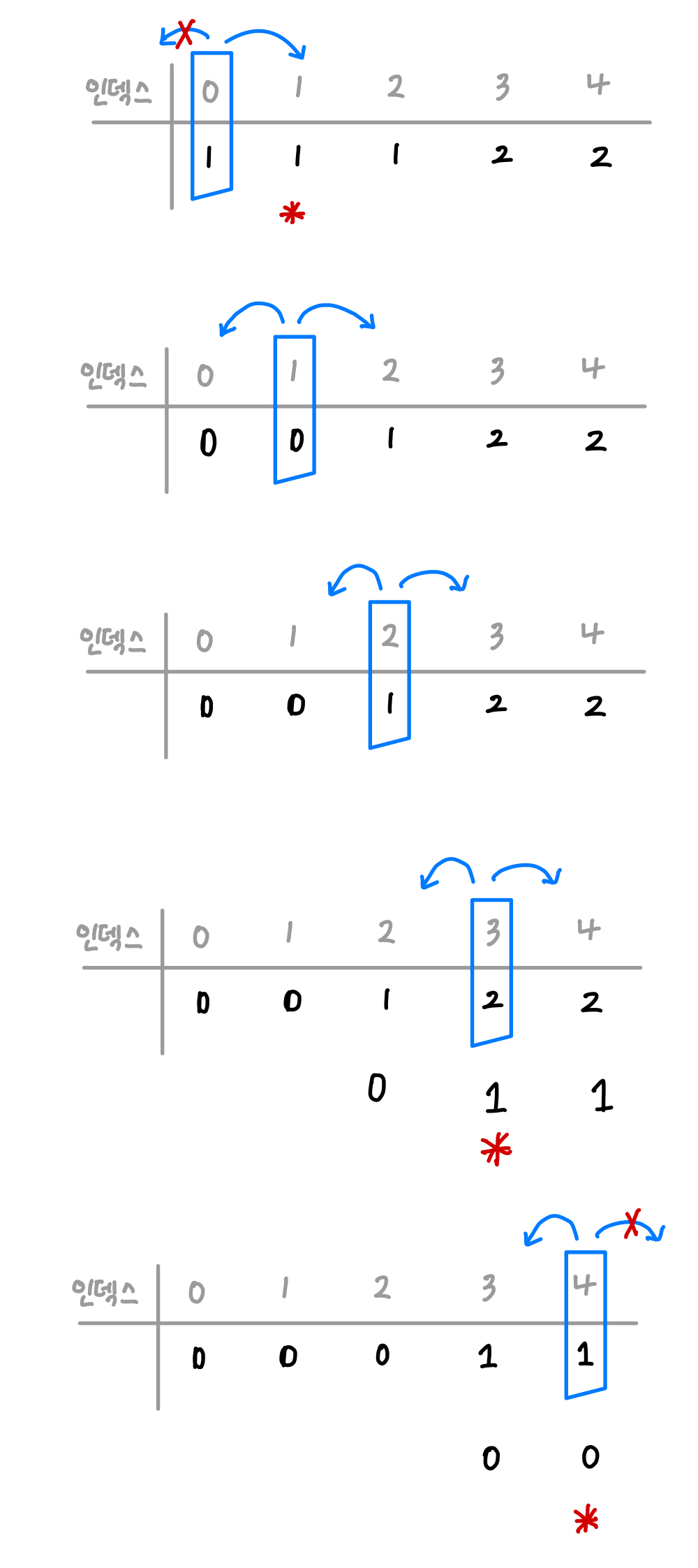 숫자 지뢰 배열만큼 반복을 돌리는데, 0번째 인덱스와, N-1인덱스만 범위를 다르게 확인해야하므로 조건문을 따로 빼서 확인하는 작업을 가졌습니다. 나머지 인덱스 같은 경우는 왼쪽, 현재위치, 오른쪽를 모두 확인하는 작업을 else문으로 주었습니다.