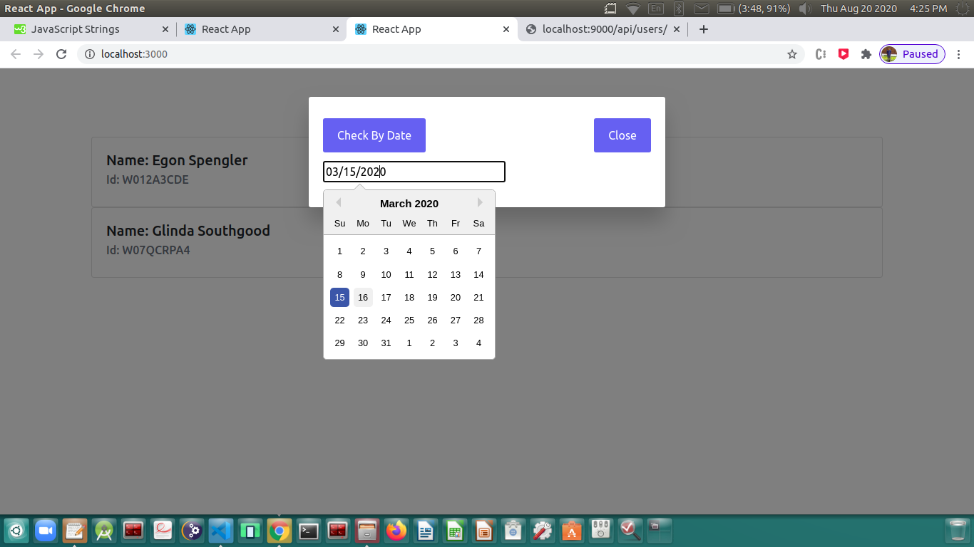 Search Person Activity on selected date from calender