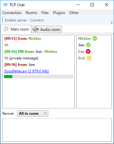 First of all if server has self-signed certificate then users those connect to him will be warned. Users also can use self-signed certificates, if them have it, then them will be marked with the appropriate icons in users list. Also user can save certificates to local trusted TCPChat storage.