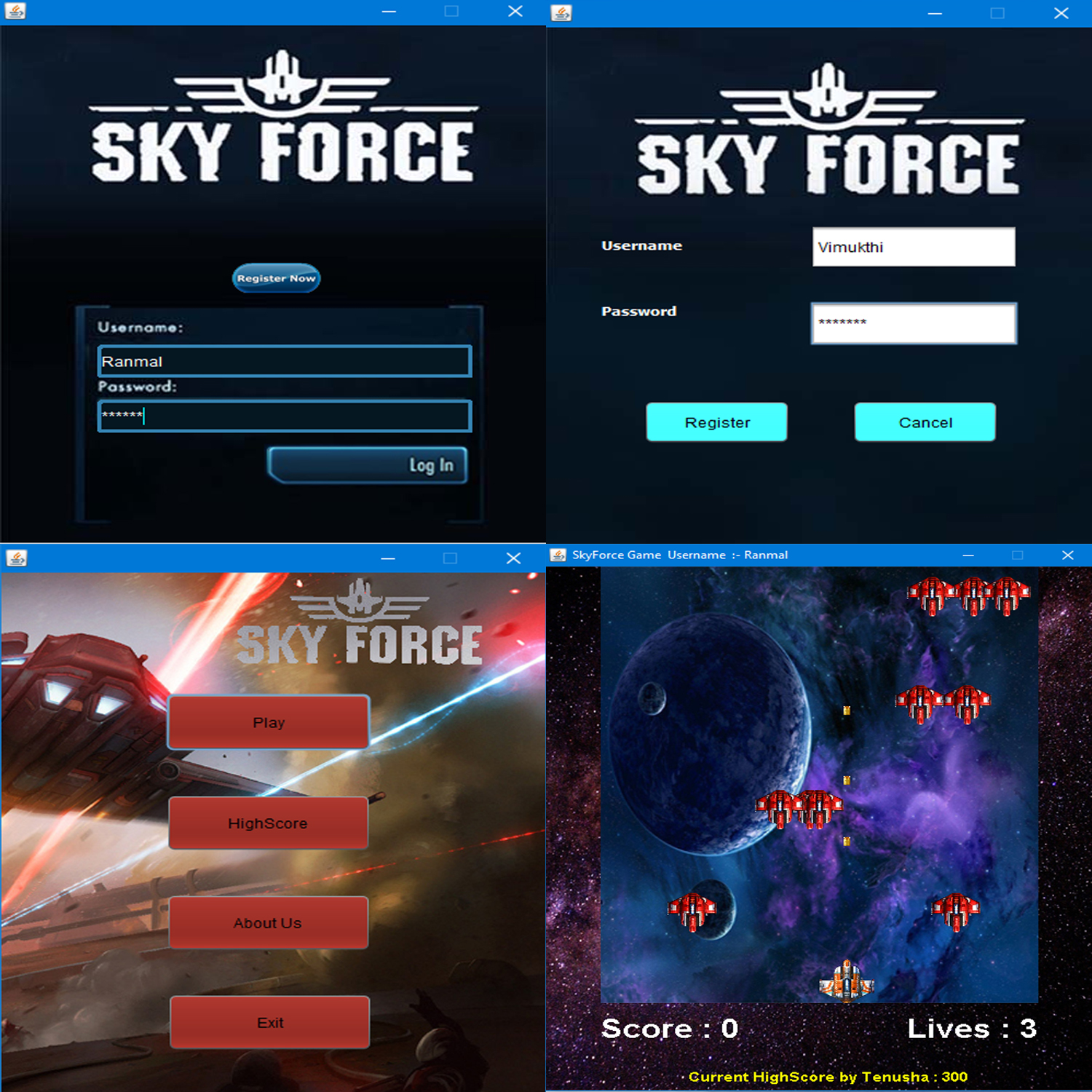 Java based classic arcade style 2D single player shooting game, developed with reference to an enemy invasion. Players Username, Password and their Highscore data are hosted using machine's localhost MYSQL Database.