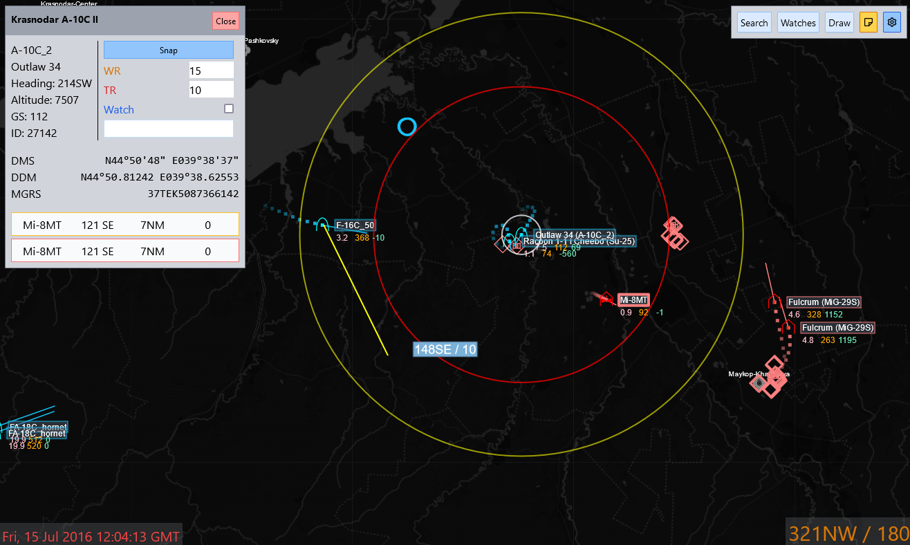 Sneaker is a browser-based radar and GCI simulation designed for use with Tacview and DCS: World. Users are presented with a simulated radar scope that provides air, sea and optionally land targets with speed/altitude/type information. Additionally Sneaker provides some GCI-specific functionality: