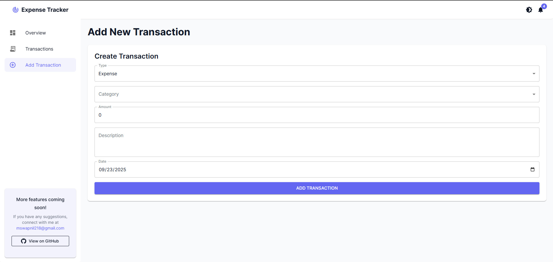 This is a full-stack expense tracker application built with the MERN stack (MongoDB, Express, React, Node.js). It allows users to add, view, and manage their income and expenses in a visually intuitive way.