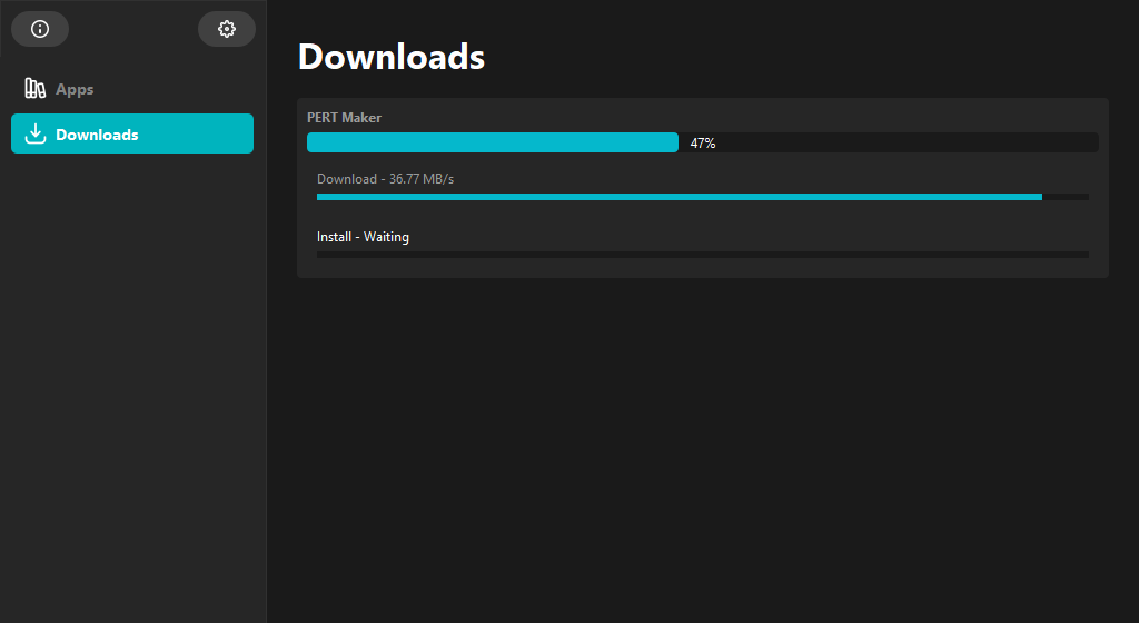 To add an app, you need to get its URL (e.g. https://github.com/Synell/PERT-Maker). You can then click on the + button and paste the URL into the text field.