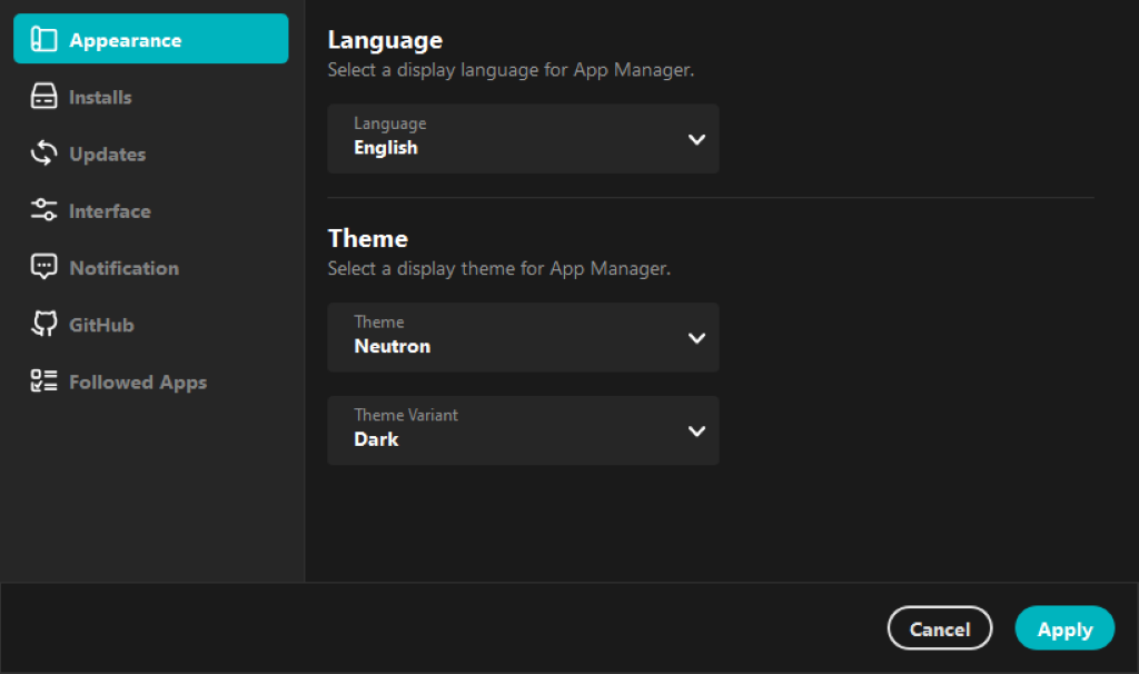 App Manager is a simple app manager for Windows, Linux and MacOS. It allows you to install, uninstall, and update apps without using the command line or having to download and install the app from your browser. Everything is done in a simple and easy to use GUI.