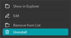 To uninstall an app, you can click on the setting button of the app in the Apps tab. Then, click on the Uninstall button.