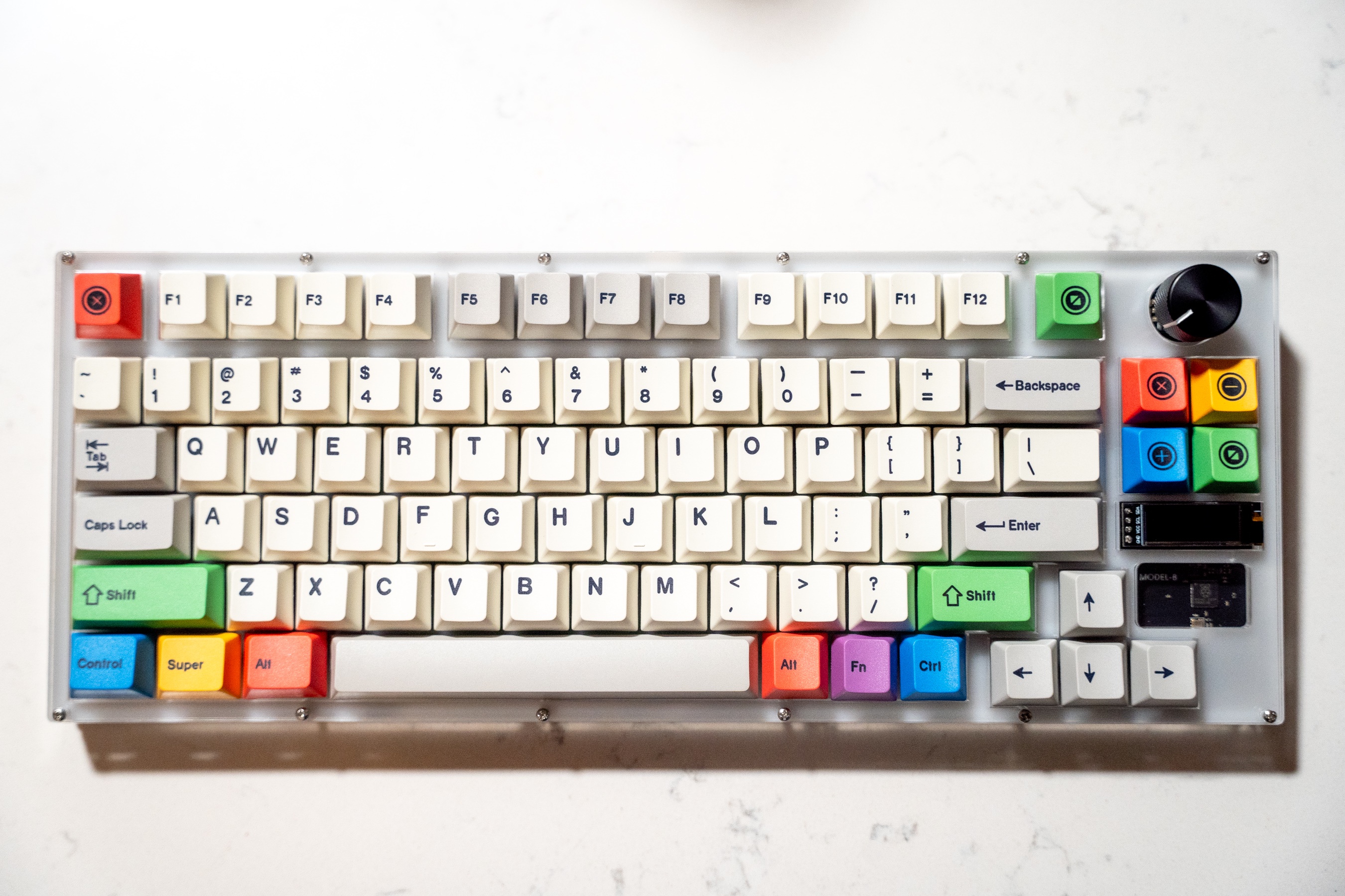 A 75% keyboard based on the RP2040 MCU with hotswappable switches, OLED display, and rotary encoder.