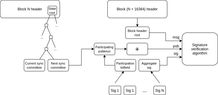 For an Ethereum block to be deemed valid, it must receive signatures from over two-thirds of the sync committee members. As a result, a light client needs to verify if over two-thirds of validators have signed a block header; otherwise, the block header is considered invalid.