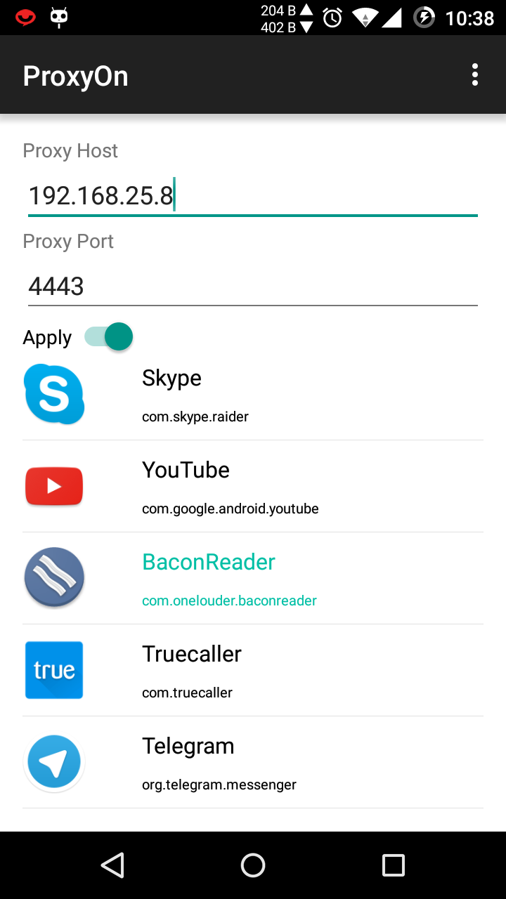 ProxyOn will list the applications to choose from which will be proxied;