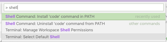 type in > shell to pull up the quick command to add the code command to the path