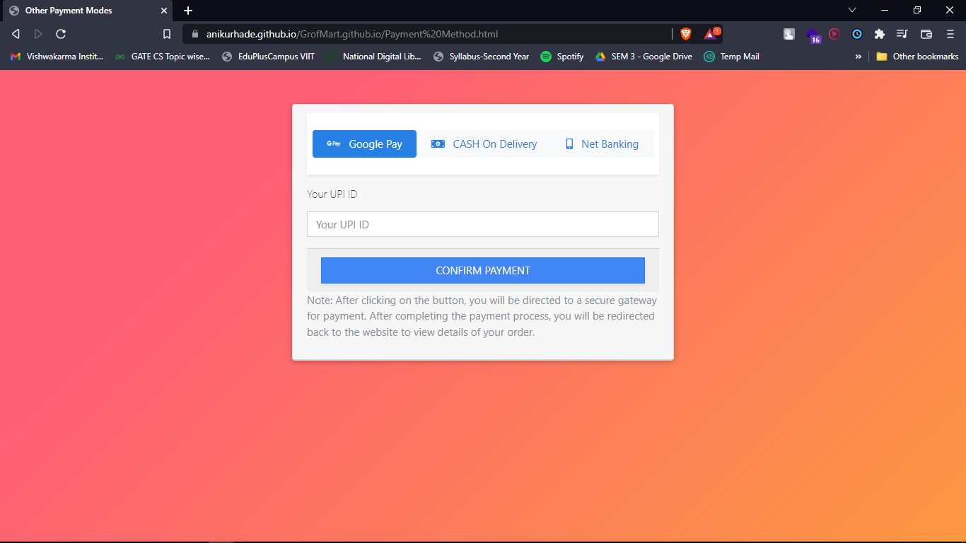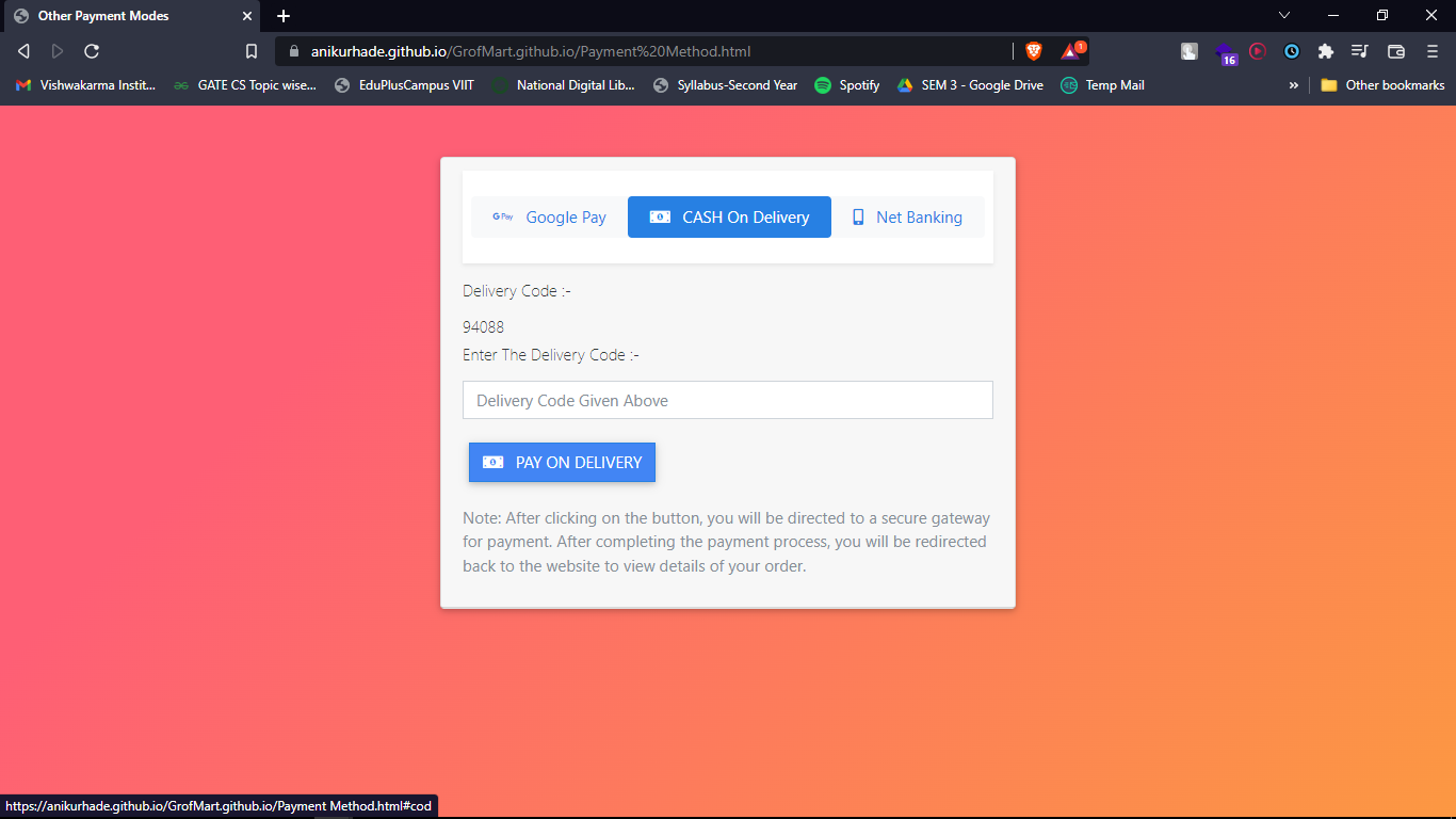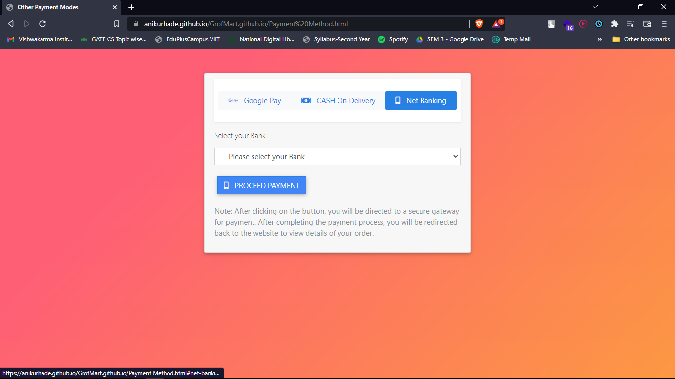 This Have Project Have Been Hosted And Is A Website. You Can Check Its Full Working here :- https://anikurhade.github.io/GrofMart.github.io/